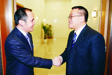 • 中共中央政治局常委、政協(xié)主席賈慶林與董事長(zhǎng)徐頂峰親切合影
